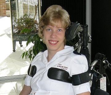 Rachel is in a wheelchair with very little meaningful movement of her body.