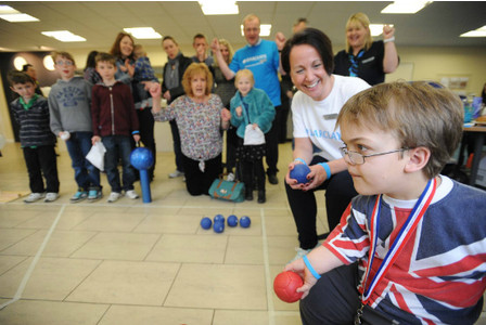 Schoolboy Seamus Morrison has today been taking on Lincoln Barclays staff and customers in a sports challenge to help fund his trip to the 2013 World Dwarf Games in the USA. Seamus, from Sutton-on-Trent, will represent Great Britain in boccia, a target ball sport like petanque and bowls, discus, javelin, shot put, swimming, football and table tennis. More than 80 countries will compete in Michigan in August – four times gold medallist swimmer Ellie Simmonds is a previous competitor in the games. Barclays has pledgd to double whatever is raised today during Seamus’s four-hour non-stop boccia challenge at the bank in Tritton Road.