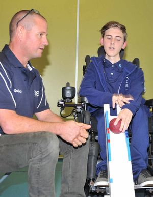 ON TARGET: Paralympics hopeful Tait Jenkins works on his game with exercise physiologist Mark Roberts after starring in the Trans-Tasman Cup.