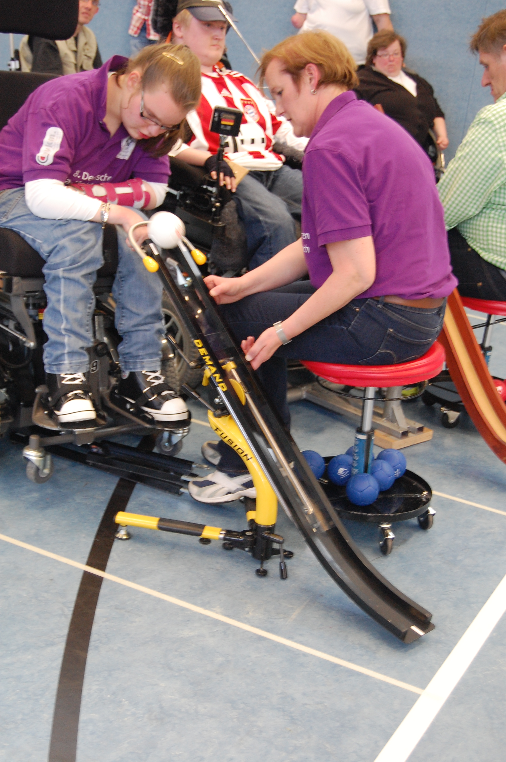 Even though the sport was included in the German paralympic games, Boccia is not very well known yet. However within the sport there is fierce competition amongst the BC3 Boccia athletes. By now, the biggest barrier is the qualification for the German championship. As there are only few tournaments overall, all the more that there is great competition to be picked for inclusion in these events. Therefore, the Boccia ramp from DEMAND in England came just in time. Especially as Sarah is very excited and hopes to be able to participate at the national championship again next year with the aid of the new ramp and a lot of practice.